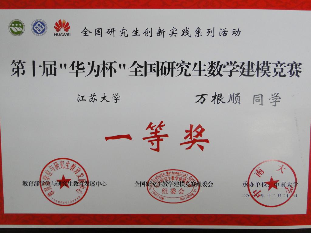 全国研究生数学建模竞赛一等奖