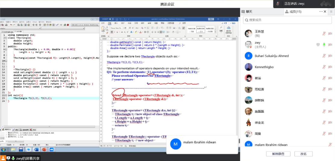 At 2:00 p.m. on October 28, 2022, the open class of the first-class undergraduate course "Object Oriented Programming" for foreign students in the School of Computer Science and Communication Engineering was launched online. This open course is for international students majoring in computer science and technology who come to China to teach in English. It is mainly taught by Associate Professor Zheng Wenyi of the College. Some teachers of the school and college participate in online teaching observation.